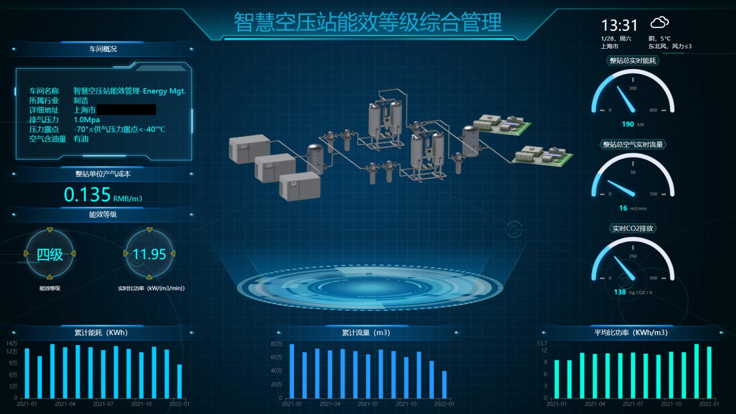 方案从系统整体视角出发,结合先进的人工智能技术和核心优势,实现压缩空气系统的高效、稳定、低碳运行。